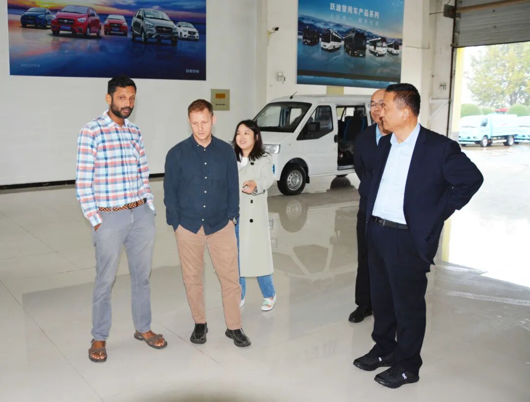 2025年10月8日,坦桑尼亚客商到访跃迪汽车,围绕新能源汽车国际化合作展开实地交流与洽谈。跃迪汽车董事长吕洪涛携副总裁崔清学、吴耀明等全程接待,双方就新能源汽车海外市场拓展、本地化服务等关键方向深入对接。