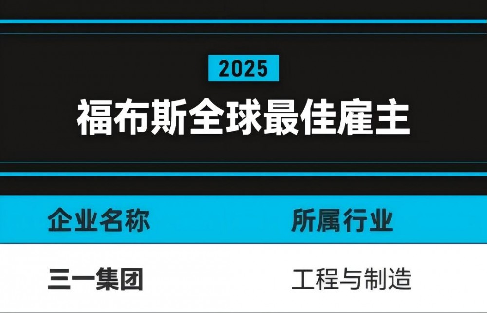 10月9日,2025《福布斯》全球最佳雇主榜单重磅发布,三一集团凭借在员工关怀、人才发展、组织建设等方面的持续投入与突出实践,成功上榜,斩获“福布斯全球最佳雇主”殊荣。