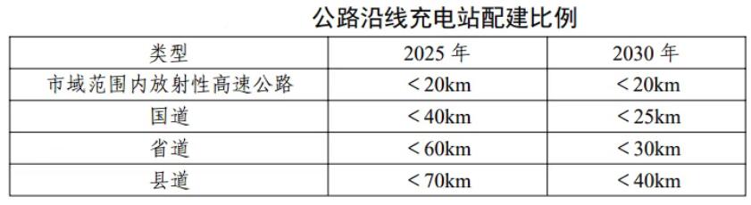 凡具备安全条件的高速公路服务区实现充换电设施全覆盖。在城市主要干道沿线的充电桩配置要求指出,2025—2030年,市域范围内放射性高速公路、主要国道(如G108)、省道、县道配置充换电站服务半径呈逐步缩减趋势,以满足电动汽车的用电需求。