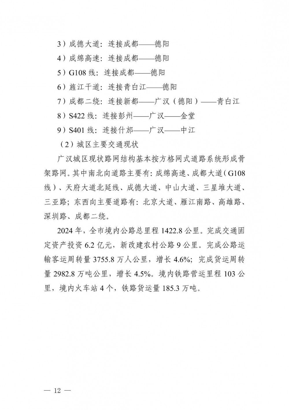 据了解,截至2024年底,广汉市货运、物流车辆2294辆,环卫车辆1117辆,出租汽车159辆,客运汽车461辆,公交车72辆。民用汽车拥有量98911辆,新能源汽车保有量5018辆,占比约5.1%。