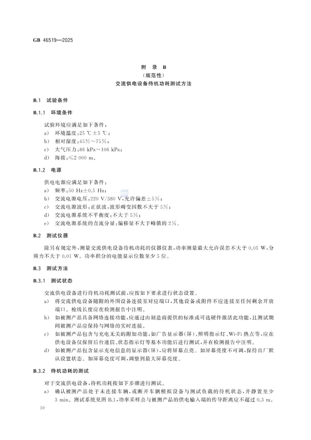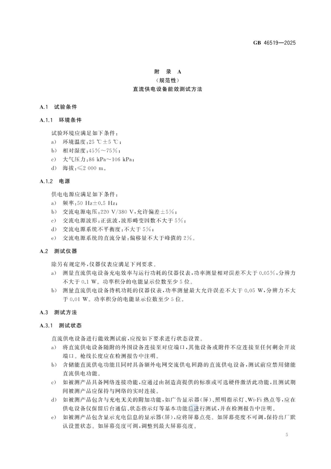 测试方法含直流设备(附录 A)与交流设备(附录 B)的具体流程,实施上对标准发布前出厂产品设13个月过渡期,为电动汽车供电设备能效管控提供统一规范,助力行业绿色高质量发展。