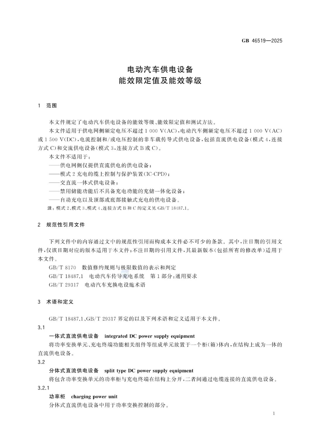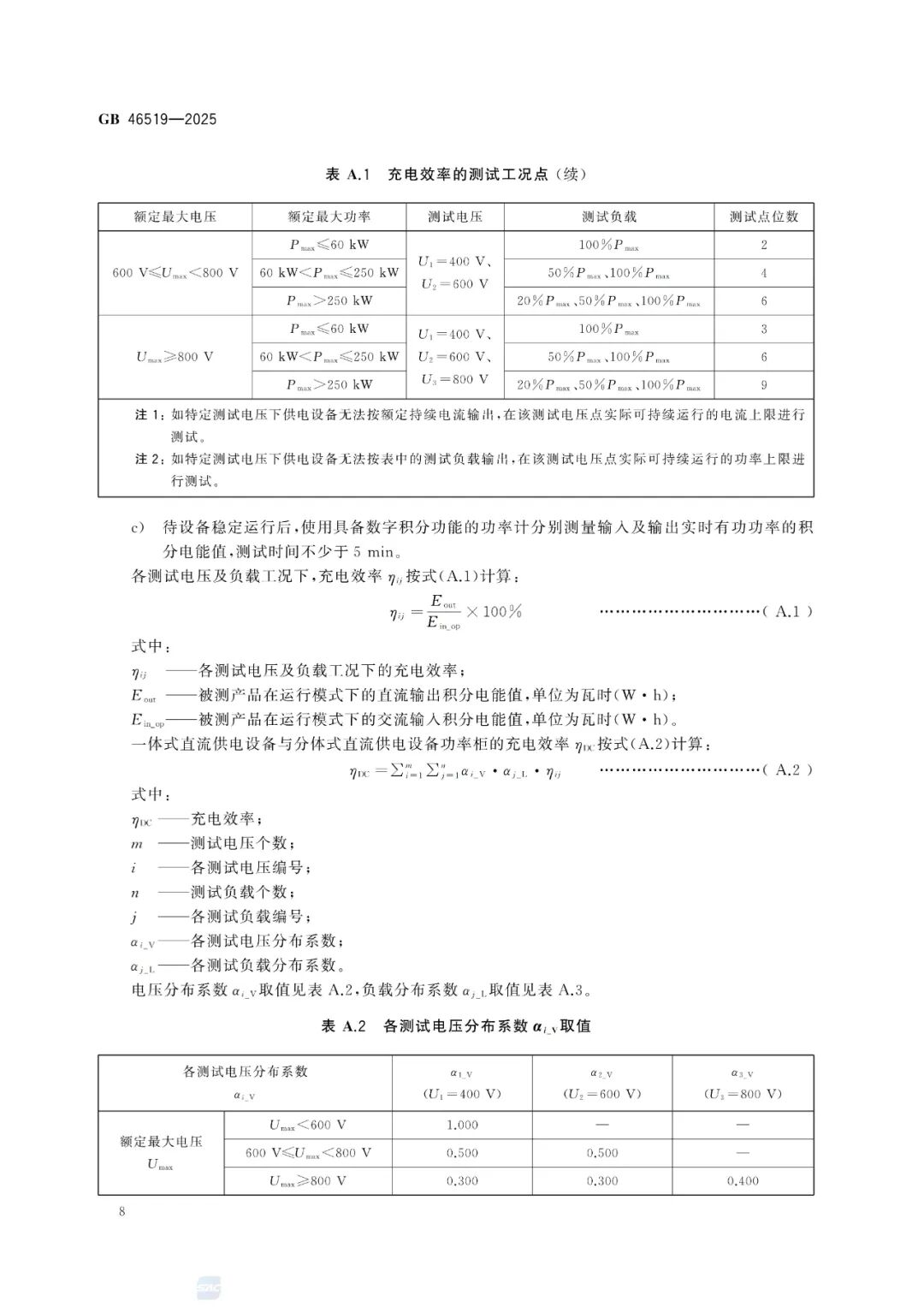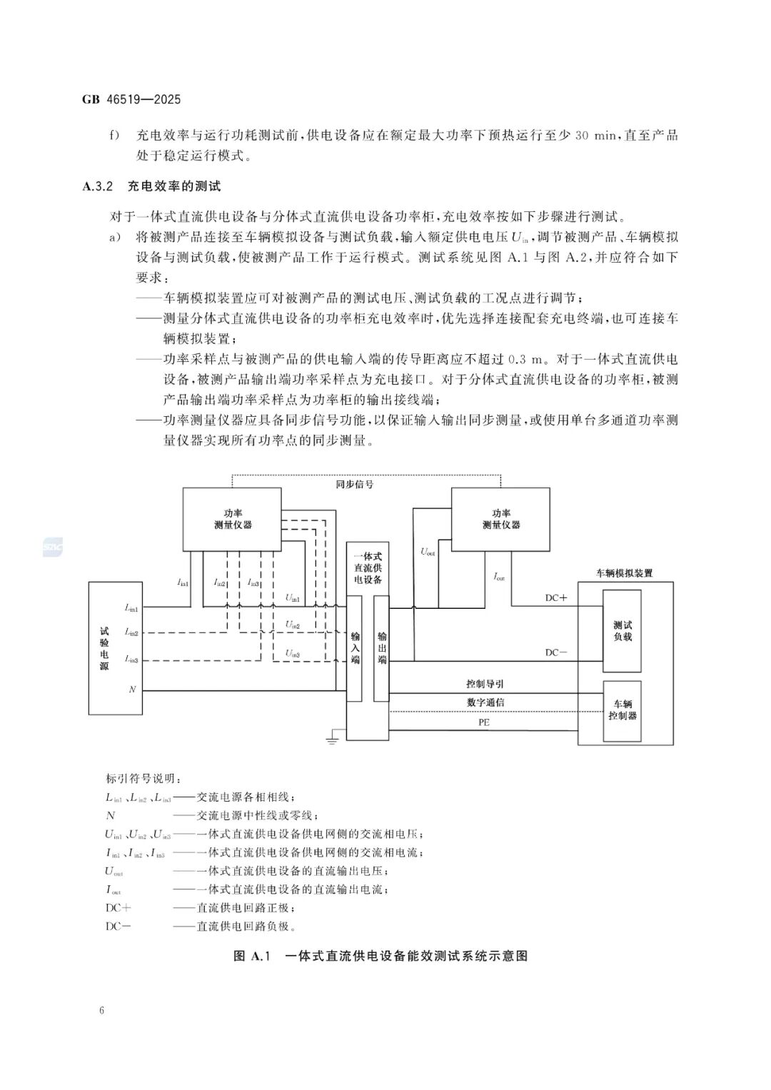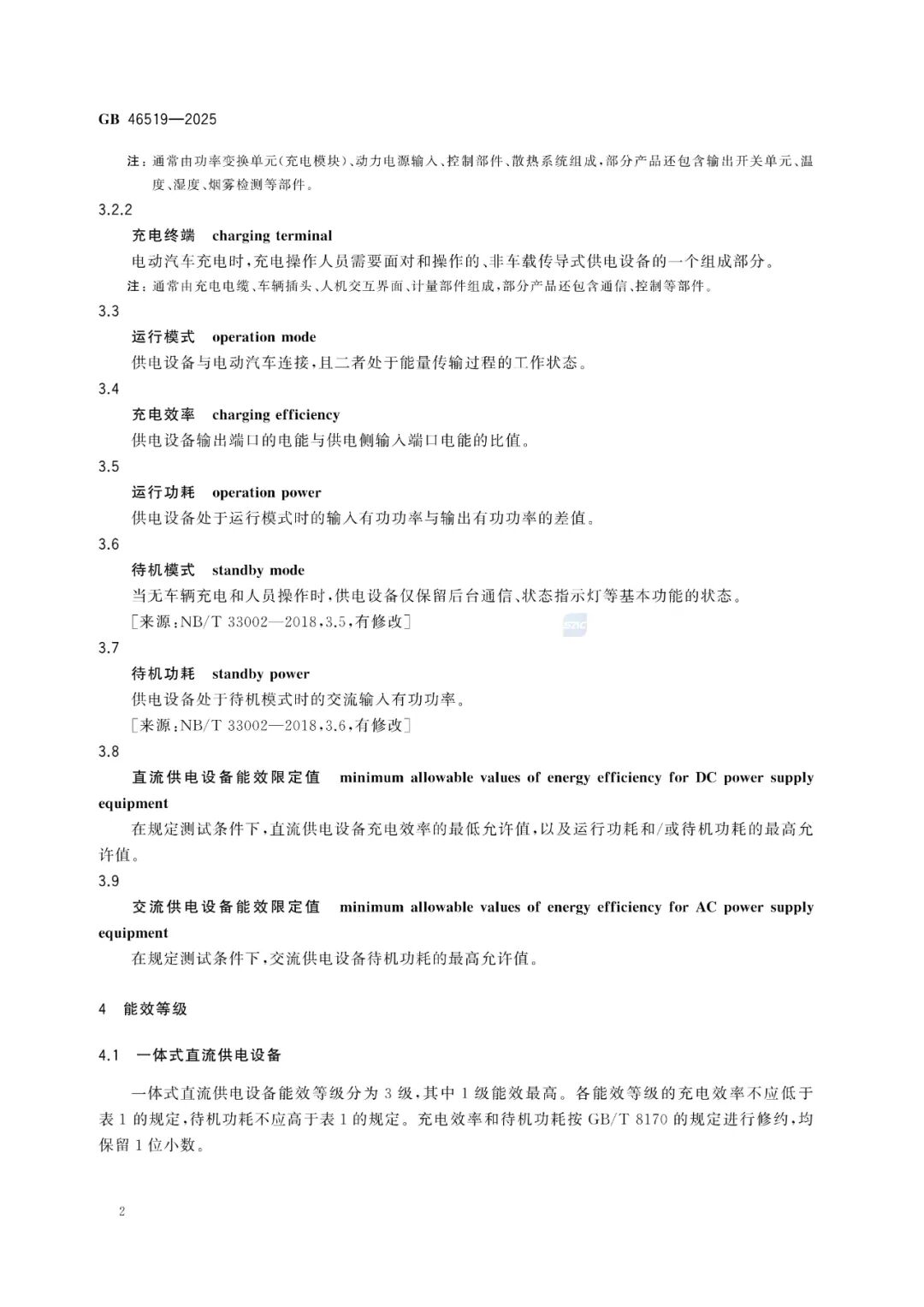 充换电头条获悉,GB 46519—2025《电动汽车供电设备 能效限定值及能效等级》由国家市场监督管理总局、国家标准化管理委员会于2025年10月5日发布,2026年11月1日实施。